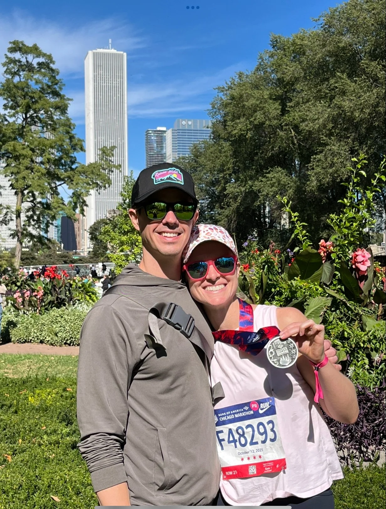 Keeley and Matt are right here in town so Iām fortunate to get to see them often. They also are busy working, taking care of their sweet dog Monica, and keeping in excellent shape. Keeley did her first mini triathlon this year and Matt and I were there to cheer for her. They did a 10K trail run together and then Keeley ran the Chicago Marathon in October for the second time but her 4th total marathon. Matt planned out where we could see her 4 times on the course to support her and it went smoothly. It was a perfect day in the most beautiful city in the world and she finished strong.