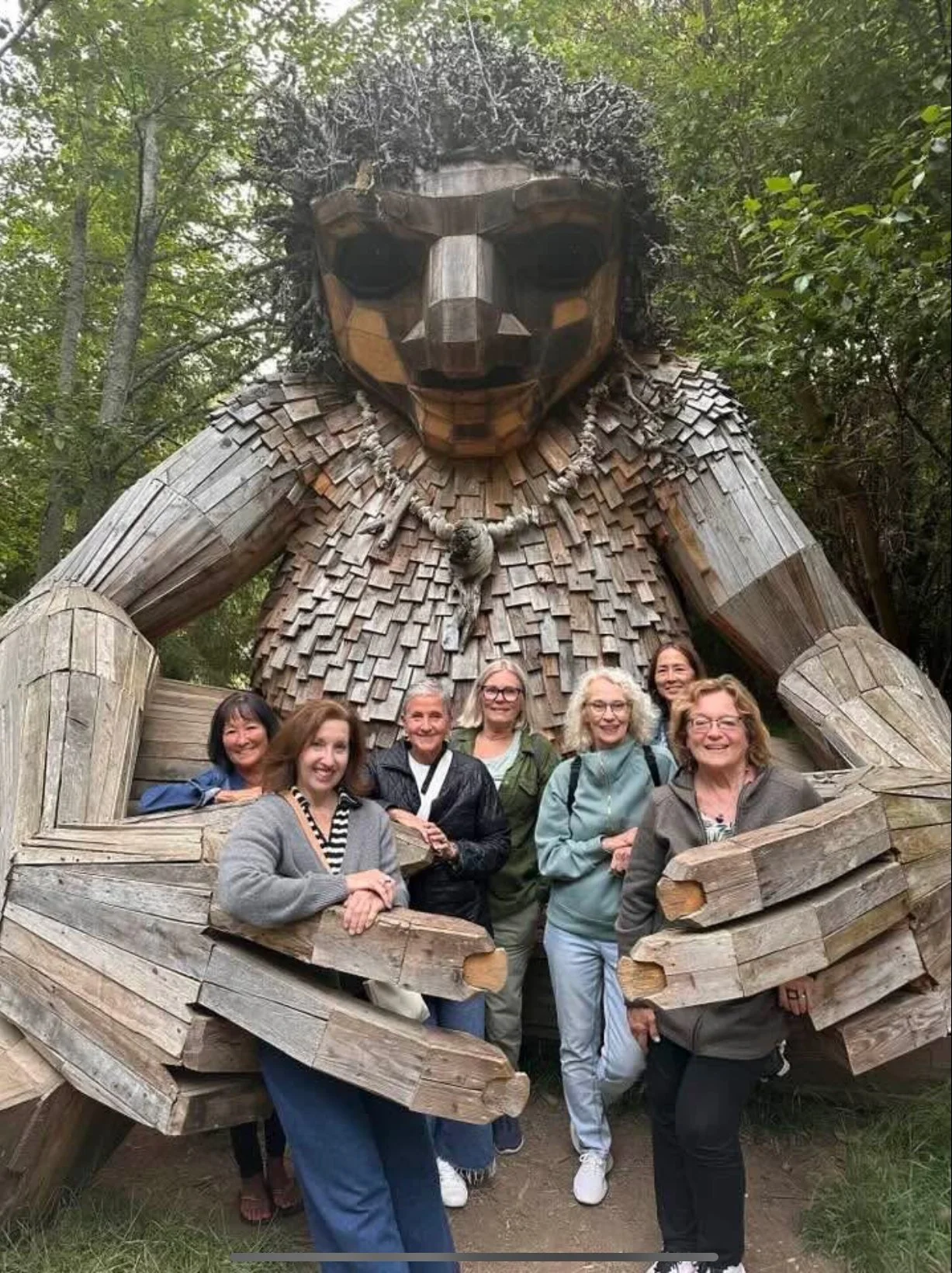 June was our family reunion in North Carolina which was wonderful. Then I flew straight to Seattle for a two week Pacific Northwest extravaganza with my sorority sisters from the University of Illinois. Seattle to Union Washington to Portland Oregon to Hood River Oregon and back to Seattle. Action packed and memories for a lifetime. Here we are on Bainbridge Island visiting the famous troll. Thanks to Kim and Nancy for hosting and planning - and to my high school friend Pam and her husband Lance for retrieving me in Oregon and taking me back for a few days at their amazing home in Gig Harbor. Then out to the ocean with my brother David. Does anyone have it better than me?
